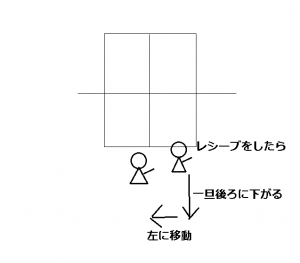 その場合、最初にレシーブをした人は、斜め右後ろに下がって、