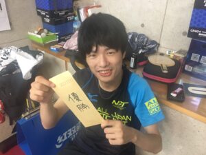 豪快なフォアハンドドライブとは裏腹に、楽しそうに試合する姿は、ほんと夏の少年です!おめでとうございます!