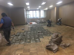 そこで、その床の木のタイルを全部剥がして、コンクリートを流し混んで