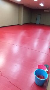 「あと一日床しごいて綺麗にしてから、マット貼るんで大丈夫ですよ!」