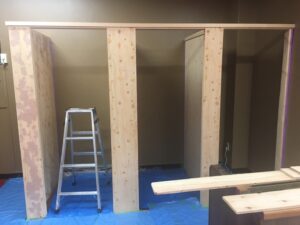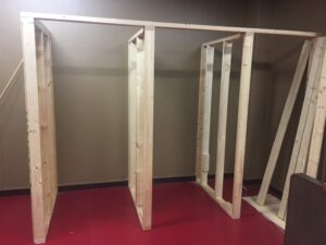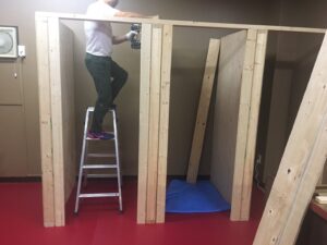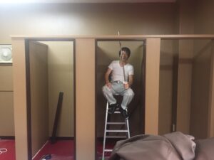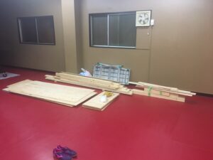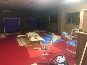 後日、斉藤パパは空いてる時間に卓球場に来てくれて、更衣室の作成を進めてくれていました。