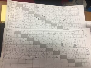予選リーグは来たもの順で予め用意させていただいているリーグ表に名前を書いていってもらいます。