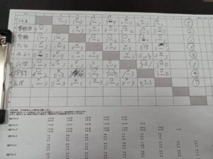 5セットマッチ3セット先取で全員総当りのリーグ戦をしました。